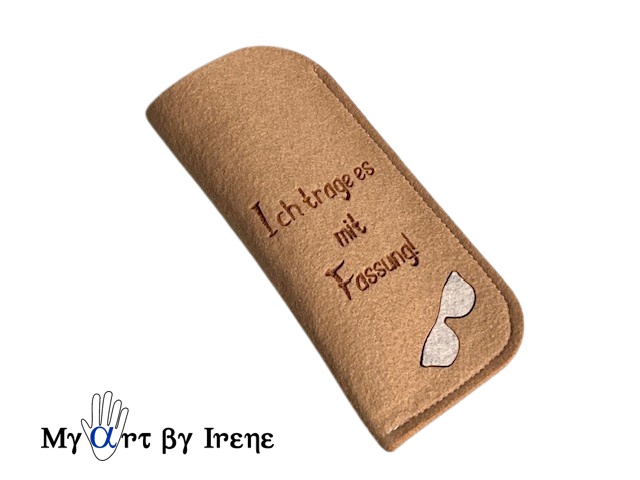 Brillenetui aus Filz "Ich trage es mit Fassung" braun