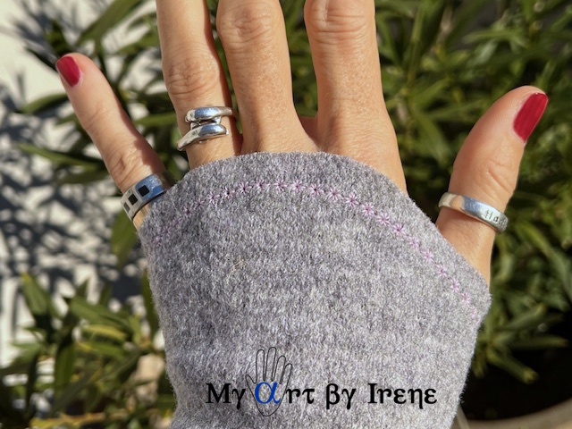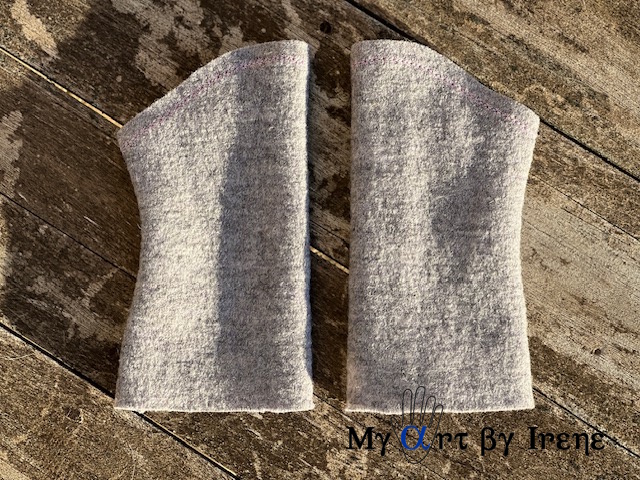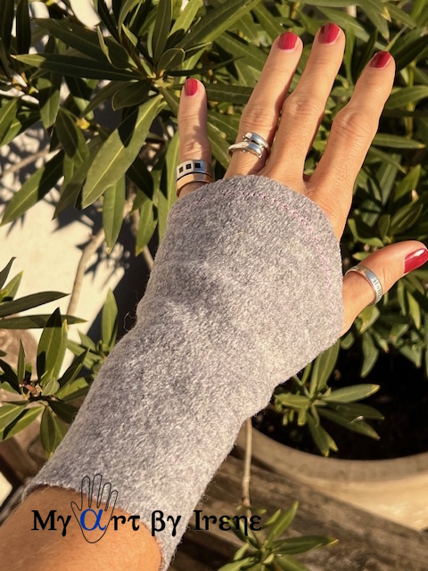 Handstulpen aus 100% Wollwalk in Grau mit Stickleiste