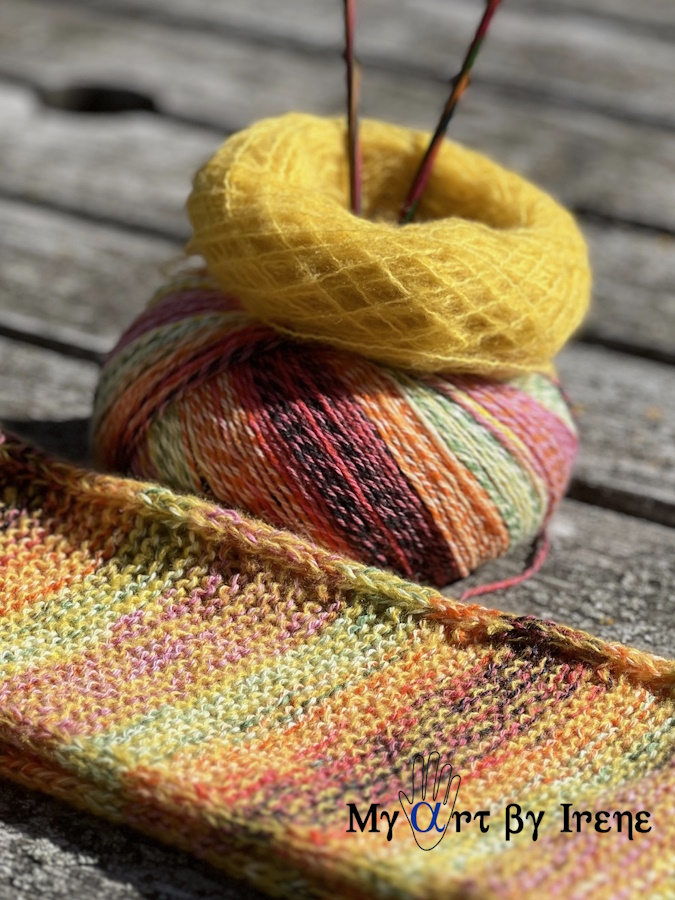 Dieses Minituch "LEBENSFREUDE" wurde von mir aus einer angenehmen zweier Luxusvariation gestrickt.